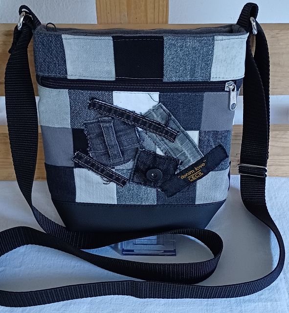 Jeans-Upcycling Crossbag „Checkerboard“, Schultertasche, Umhängetasche
