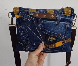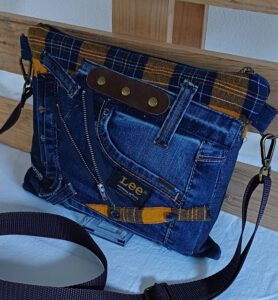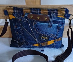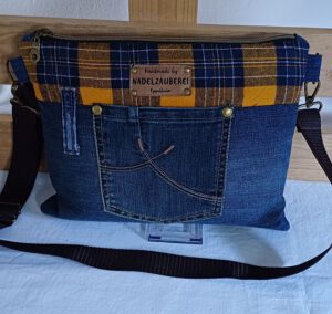 Individuelle Crossbag aus recyceltem Denim in Kombination mit einem alten Flanellhemd – jedes Stück ein nachhaltiges Unikat. Der Mix aus robustem Jeansstoff und weichem Flanell sorgt für einen spannenden Materialkontrast und einen lässigen, urbanen Look.