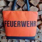 Schöner Shopper gefertigt aus einer alten Feuerwehrjacke mit dem Schriftzug Feuerwehr.